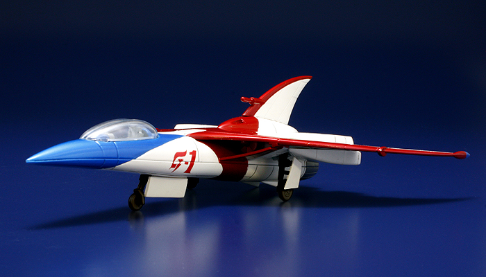 大鷲の健が搭乗する人気の"G-1"のリペイントver.が待望の再販!着脱式のランディングギアと専用ベーススタンドで、飛行・着陸状態でのディスプレイが可能です。